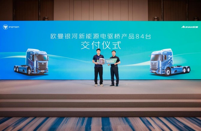 新能源重卡的市场价值,最终要通过真实运营与规模化落地来检验。本次大会中,欧曼聚焦业务实效,将银河新能源重卡产品优势与市场需求紧密衔接,让品牌与伙伴的合作走向更深层次。84 台欧曼银河新能源电驱桥产品交付客户,将正式投入南通乃至江苏地区干线运输领域,以绿色运力助力区域物流升级。