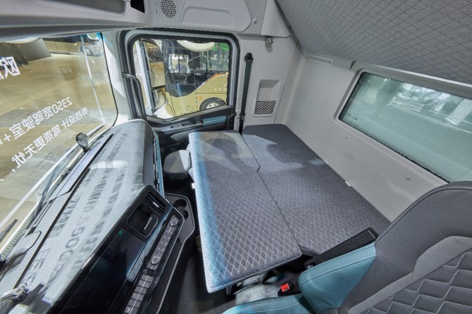 智能升级,安全舒适兼备。在智能化配置上,欧航智蓝EH配备L2级组合辅助驾驶系统,不仅降低长途驾驶疲劳感,还大幅提升驾驶安全性。在舒适智能化方面,欧航智蓝EH纯电重卡延续了欧航H重卡的优势,驾驶空间大,平地板,直立高度达1.93米,卧铺可拓宽至1.2米,气囊减震座椅还具备通风加热功能,驾乘更舒适。车辆还配装了12.3寸的智能语音控制大屏,内置腾讯生态与华为HiCar,在兼具丰富的娱乐生态与便捷的车机互联操作体验的同时,还提供全车电子管家,实时掌握车辆真实状况,用车更安心。
